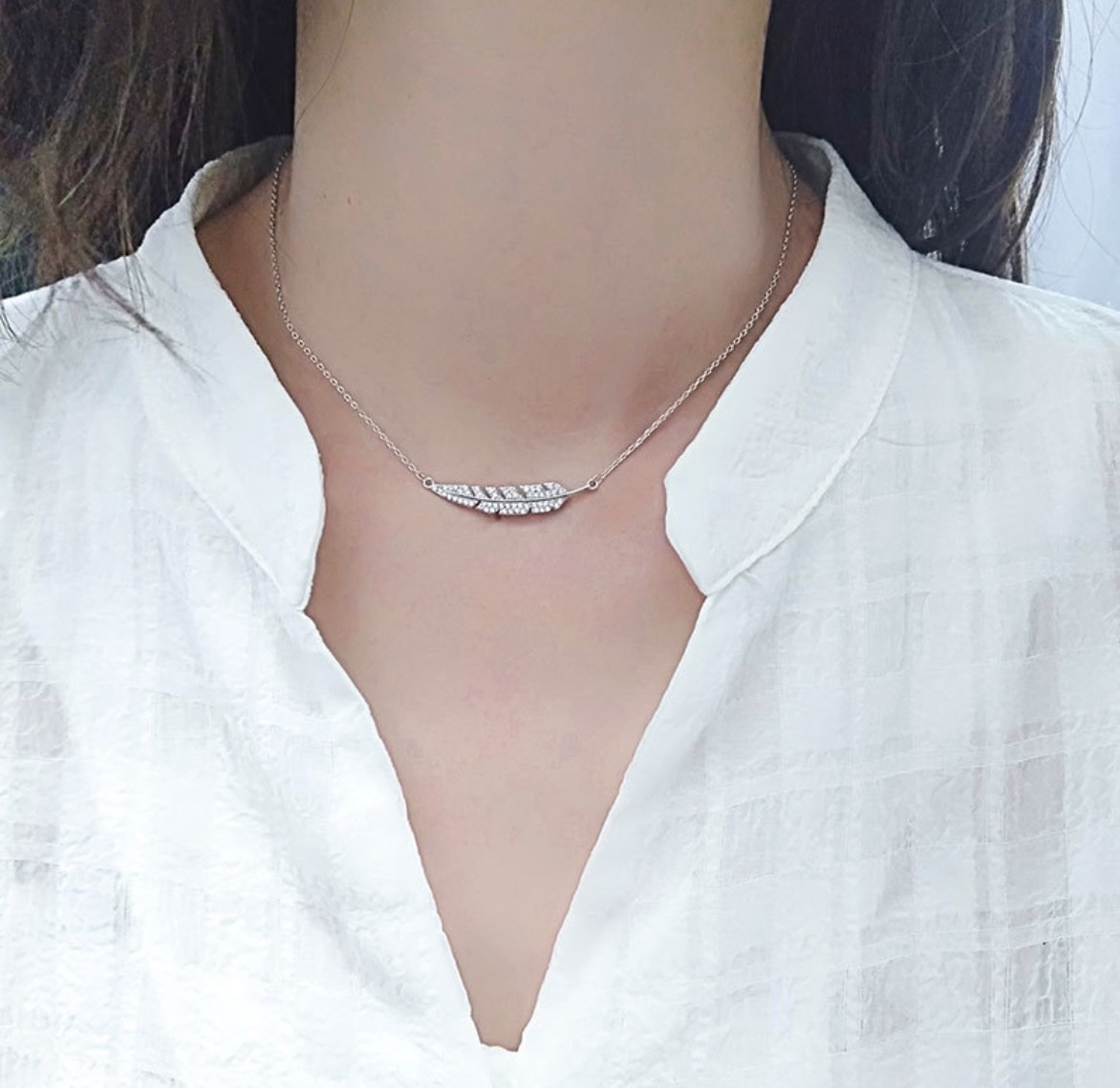 S925純銀滿鉆葉子鎖骨鏈